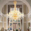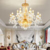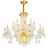 2. Thiết kế tinh xảo – Khi nghệ thuật gặp công năng2.1 Chất liệu cao cấp, bền đẹp theo thời gianSản phẩm được chế tác từ thủy tinh trong suốt kết hợp với những viên pha lê được cắt gọt tỉ mỉ. Mỗi chi tiết pha lê khi tiếp xúc với ánh sáng sẽ tạo ra hàng trăm tia sáng lung linh, phản chiếu khắp không gian. Chất liệu này không chỉ đẹp mà còn duy trì được độ trong sáng lâu dài, chống ố vàng và dễ vệ sinh.2.2 Kiểu dáng sang trọng và cân đốiThiết kế của đèn chú trọng vào sự hài hòa giữa kích thước và cấu trúc, giúp sản phẩm vừa nổi bật vừa không gây cảm giác nặng nề. Từng thanh treo pha lê, từng vòng khung kim loại đều được xử lý tinh xảo, tạo nên một tổng thể uyển chuyển nhưng vững chãi.2.3 Nguồn sáng đa hướngHệ thống bóng đèn được bố trí hợp lý, giúp ánh sáng lan tỏa đều khắp không gian. Ánh sáng khi đi qua pha lê sẽ được khuyếch tán thành những tia sáng mềm mại, vừa đủ rực rỡ để tạo điểm nhấn, vừa đủ ấm áp để mang lại cảm giác thư giãn.3. Ưu điểm vượt trội