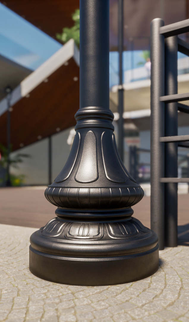 • Thân cột: Nhôm đùn hoặc thép mạ nhúng kẽm.