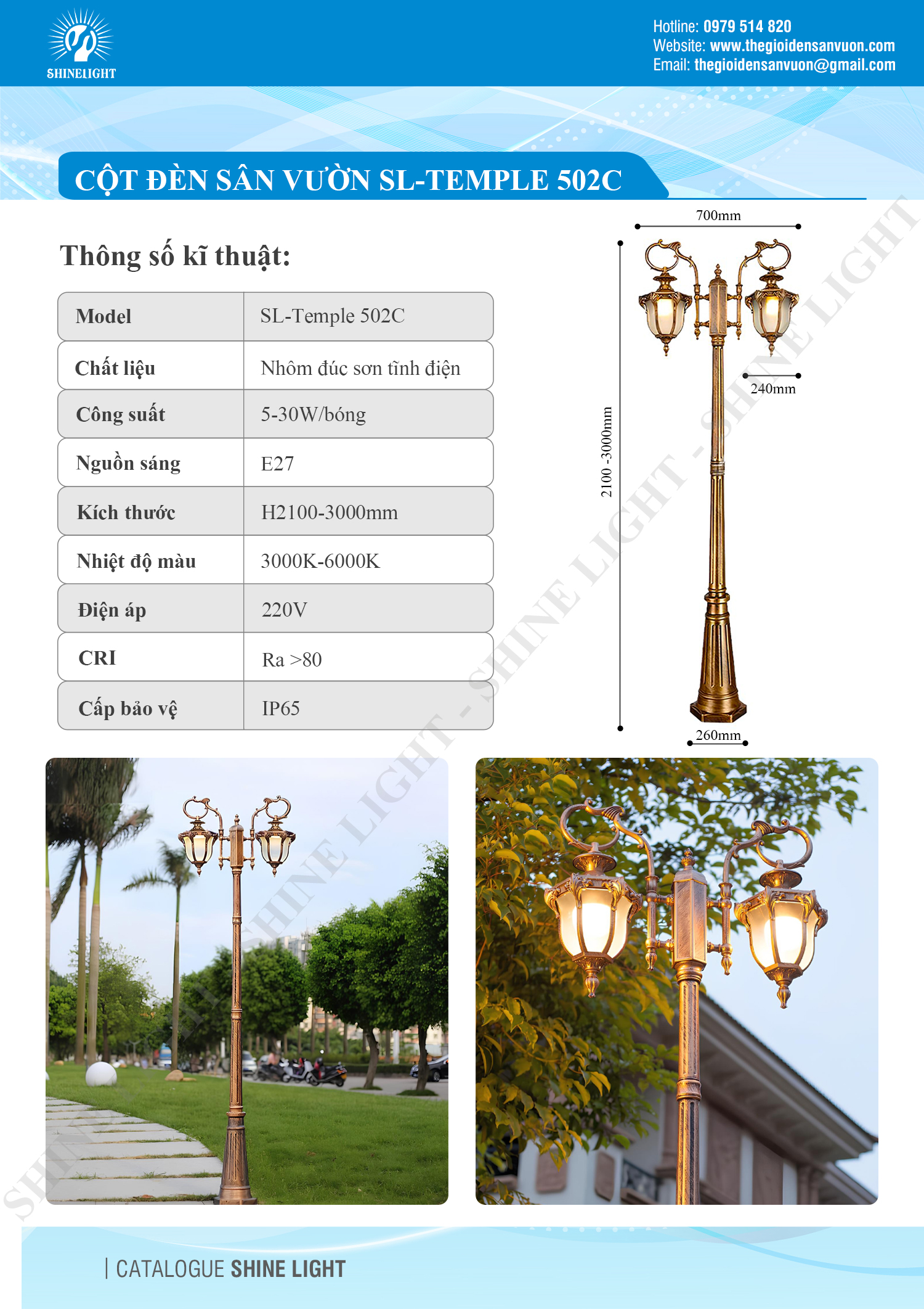 Thông số kĩ thuật cột đèn sân vườn tân cổ điển SL-Temple 502C