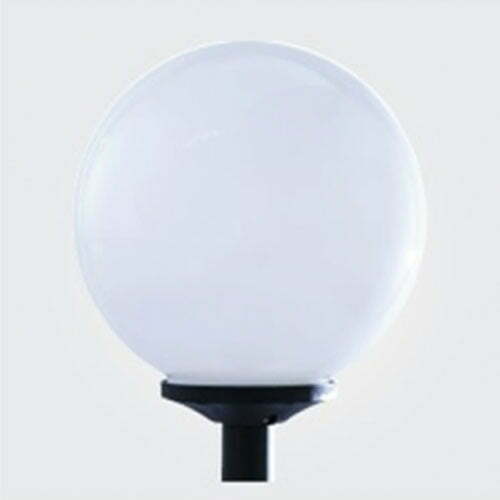 Chất liệu: + Chụp cầu: nhựa PMMA trắng sọc + Tán quang: 6 tầng được làm từ inox , được sơn tĩnh điện Kích thước: D300, D400 Tiêu chuẩn: + Chỉ tiêu bảo vệ chống bụi, nước đạt tiêu chuẩn IP54 + Cấp cách điện: Class I Công suất + Bộ điện 220V-50Hz lắp trong đèn Compact (25-50W), 70W, đèn LED + Đui: E27 Lắp đặt + Đèn lắp trên đầu cột Ø60, ngập sâu 70mm + Khoảng cách đặt đèn từ 15 đến 30m, tùy thuộc công suất bóng và địa hình nơi lắp đặt.