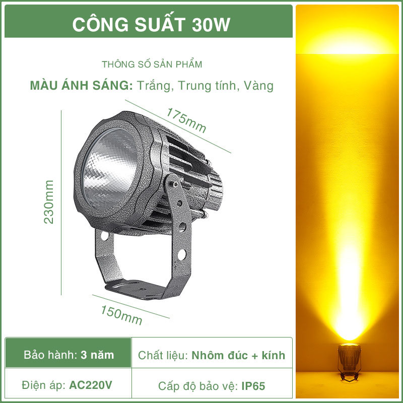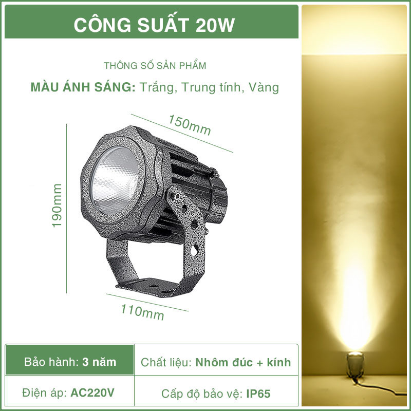 Đèn chiếu điểm chuyên sử dụng để chiếu cột nhà, tường nhà… được thiết kế với thấu kính nên có thể chiếu xa, góc chiếu nhỏ tạo hiệu ứng ánh sáng cho tường nhà hay cột nhà tăng sức vẻ đẹp cho ngôi nhà bạn.