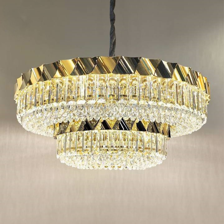 Đèn sở hữu thiết kế 2 tầng đèn với đường kính D800mm và D500mm, sắp xếp cân đối, tạo chiều sâu cho trần nhà. Kiểu dáng đối xứng mang lại cảm giác sang trọng, đồng thời lan tỏa ánh sáng rộng, chiếu sáng đều khắp không gian mà không gây chói gắt.Chất liệu cao cấp — Kết hợp tinh xảo
