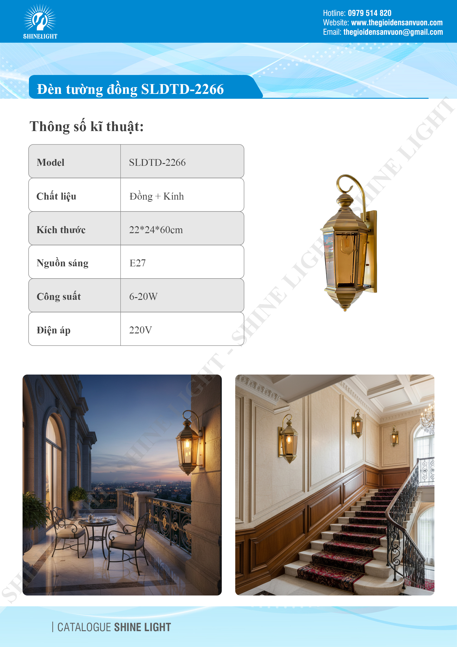 Đèn tường đồng SLDTD-2266 là dòng sản phẩm được Shine Light phát triển dành riêng cho những công trình yêu cầu cao về vật liệu, độ bền ngoài trời và tính thẩm mỹ theo phong cách tân cổ điển châu Âu. Đây là mẫu đèn được nhiều kiến trúc sư và đơn vị thi công đánh giá cao trong phân khúc đèn tường đồng cao cấp.