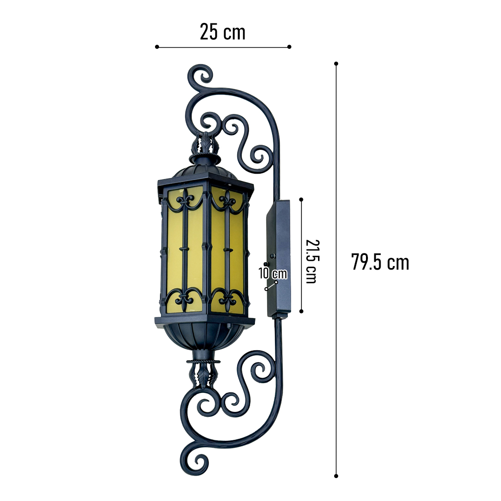 Đèn KS-T80 mang phong cách kiến trúc Châu Âu cổ điển với những đường nét hoa văn uốn lượn tinh xảo. Với kích thước chiều cao lên tới gần 80cm, sản phẩm tạo nên điểm nhấn quyền lực và thu hút ngay từ cái nhìn đầu tiên cho mặt tiền căn nhà, biệt thự hay các quán cafe phong cách retro.