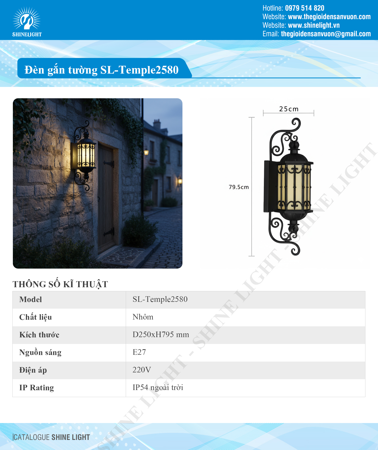 Hãy để Shine Light Việt Nam giúp bạn mang ánh sáng nghệ thuật về cho công trình. Liên hệ ngay để trải nghiệm, nhận tư vấn tận tâm và báo giá ưu đãi cho mẫu đèn gắn tường SL-Temple2580 – lựa chọn hoàn hảo để biến cổng nhà bạn thành cổng biệt thự, lối đi thành hành lang của một lâu đài sang trọng.