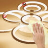 Hình dáng 8 cánh tròn đều được sắp xếp đồng tâm tạo nên cảm giác chuyển động nhẹ nhàng như một đóa hoa đang nở giữa trần nhà. Thiết kế không góc cạnh giúp sản phẩm dễ dàng hòa nhập với nhiều phong cách nội thất, từ hiện đại, Scandinavian cho đến Japandi hoặc tối giản đương đại. Sự mềm mại trong hình khối cũng khiến không gian trở nên ấm áp và dễ chịu hơn.