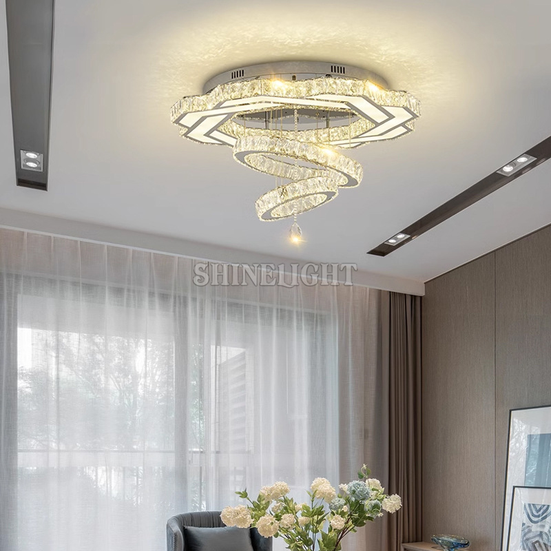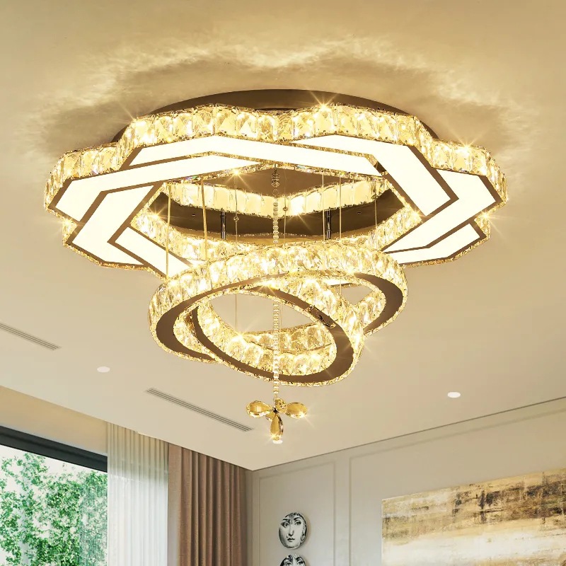- Hạt pha lê cắt gọt tỉ mỉ: Pha lê chất lượng cao được gia công kỹ lưỡng giúp khúc xạ ánh sáng đa chiều, tạo hiệu ứng lung linh huyền ảo, lấp lánh như những viên kim cương nhỏ rơi xuống từ trần nhà.