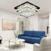 - Mặt đèn được thiết kế tinh xảo với các chi tiết pha lê nhỏ đan xen, tạo hiệu ứng phản chiếu ánh sáng lấp lánh sang trọng.